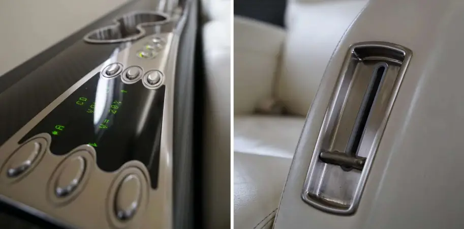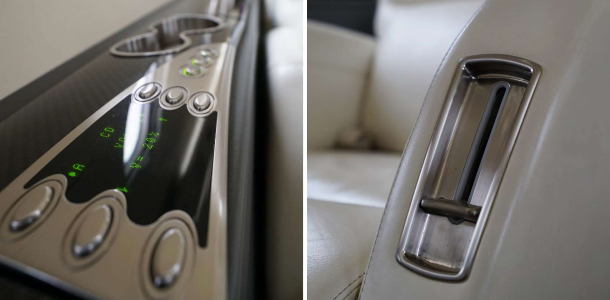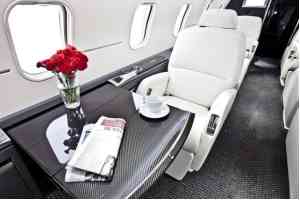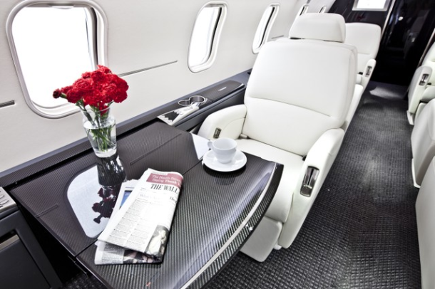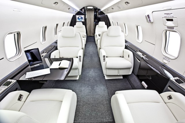 Number of Passengers: 9 New Interior in 2010 featuring Ferrari Carbon Fibre Headliner: Pale beige ultra- leather Seating: Light cowhide/honey/pearl leather seating, forward & aft 4-place clubs, aft belted lav seat Cabinetry/Woodwork: High-gloss dark brown carbon fibre veneer woodwork w/alamo satin chrome plated hardware Entertainment Equipment: Airshow 400, DVD player, CD player, dual 15-inch LCD monitors Storage: Forward LS & RS closets Lavatory: Aft full service private w/vanity. Sidewalls: Pale beige ultra-leather upper sidewalls Carpet: Dark gray wool cross stitch carpeting Refreshment Equipment: Forward galley w/microwave oven, automatic coffee maker, large ice drawer & food storage