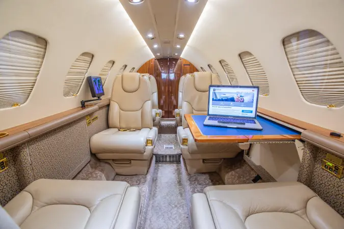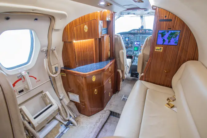 A cabin temp indicator and freon air conditioning modification ensure passenger comfort throughout flight, while an LED cabin lighting upgrade with EMTEQ downwash and interior lighting, and AVTEC LED passenger reading lights provide ideal conditions for work or entertainment.