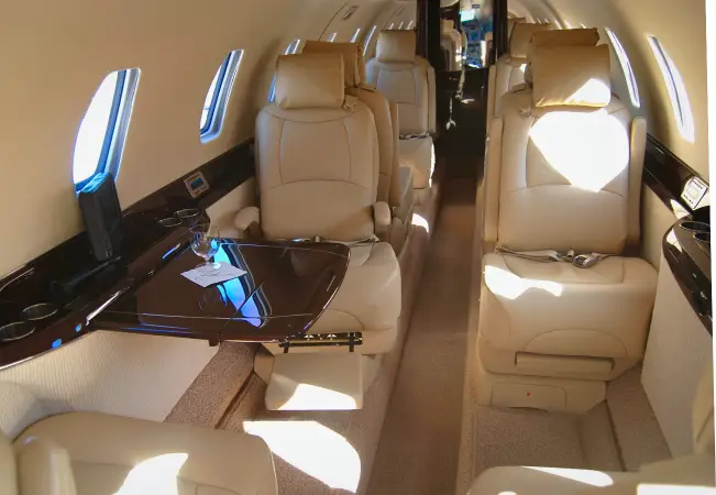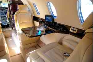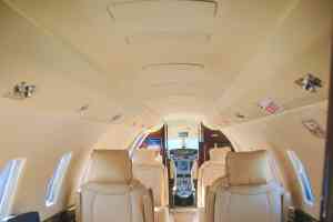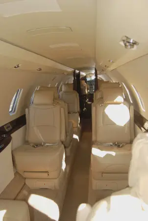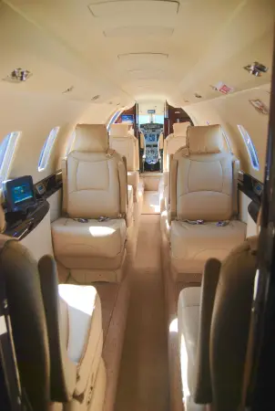 Beautiful tan and cream colored interior with 8-passenger double club seating, a right-hand forward refreshment center and left-hand forward closet. Four side wall monitors. One cabin monitor in forward cabinet/closet. Forward galley with custom storage in drawers, a microwave, a drop aisle storage box. Airshow 4000 system with dual DVD unit. Aircell Iridium cockpit and cabin. Cabinets, carpet and upper sidewalls completed by Cessna in 2013. Crew and cabin seats, lower sidewalls completed by Duncan Aviation, April 2018.