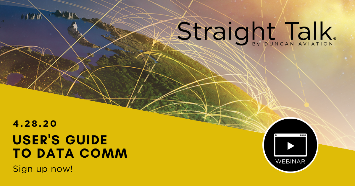 Duncan Aviation Eastern Regional Avionics Sales Manager Michael Kussatz will be joined by Universal Avionics Customer Training Manager Amanda Grizzard and Universal Avionics Technical Product Manager Lynn Root to discuss domestic data comm operations, pilot perspectives, operational benefits, and current availability during this interactive Duncan Aviation Straight Talk Webinar.