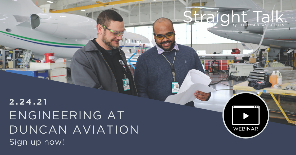 On Wednesday, February 24th, at 11 a.m. CST, Engineering Team Leader Tracy Bohaboj, Enterprise Engineering Manager Michael Hill, and ODA Administrator Don Shaffer will discuss the importance of engineering at Duncan Aviation, talk about what they do, and touch on the most commonly asked engineering & certification questions they receive.