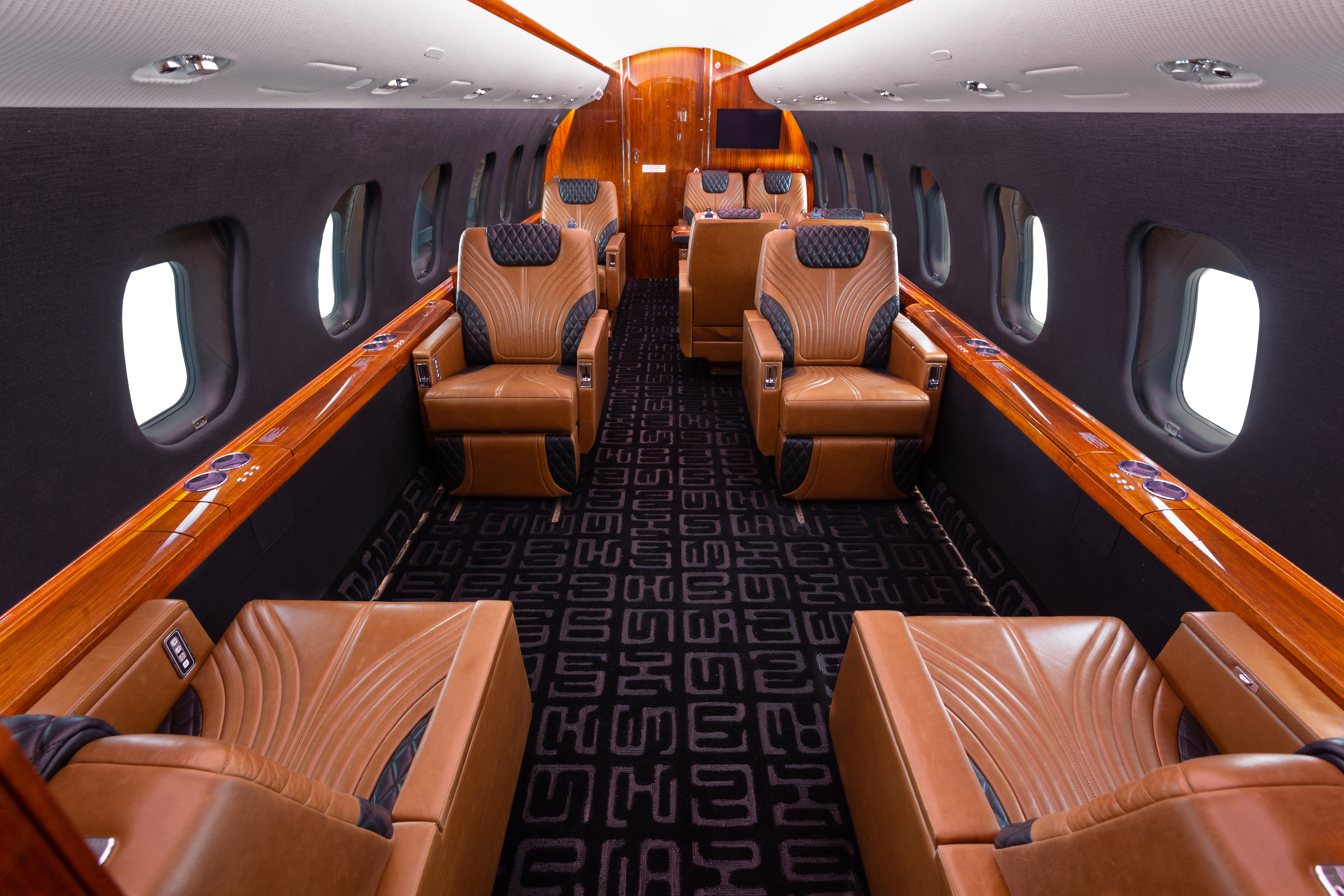 In addition to the interior completion, the aircraft received a custom paint scheme that incorporated the owner’s brand in a bold yet distinct way, a 120-month inspection, a Collins Aerospace Venue Cabin Management System upgrade, and new LED lighting.
