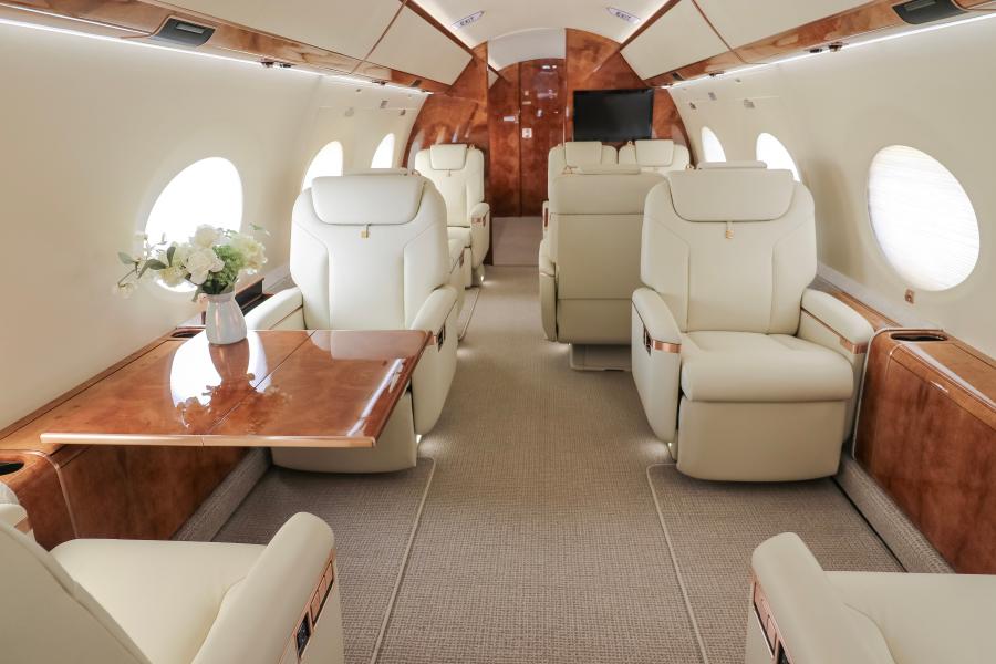 The G650’s new paint features a refined gray belly accented with bold red striping, chosen to reflect the owners’ personal ties to his Alma Mater. The colors were matched directly to official Pantone shades, creating a clean and distinctive finish. The result is a striking livery that balances elegance with individuality.