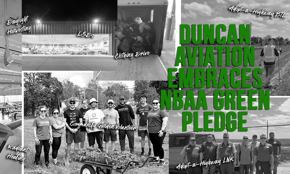 LINCOLN, NEB — In an effort to make NBAA-BACE a more sustainable event, NBAA is offering exhibitors the opportunity to participate in the NBAA Green Pledge. Duncan Aviation has embraced this and will fulfill as many of the Green Pledge practices as possible in the company’s booth set-up and show activities.