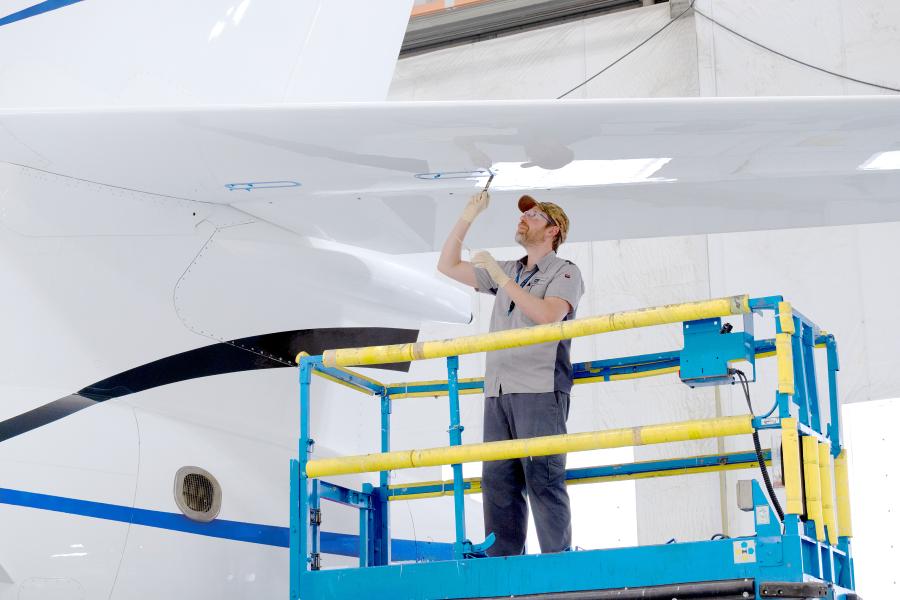 Although Duncan Aviation has more than 30 years of experience as a Falcon Authorized Service Center—and has completed hundreds of C-checks on Falcon 2000, 900, and 7X aircraft—this was the company’s first Falcon 8X 1C inspection. In preparation, Dale Taylor, Duncan Aviation Falcon Airframe Team Leader, and his team conducted extensive advance planning. This included detailed reviews of inspection and component task cards, familiarization with applicable SBs, and pre-ordering required parts before the aircraft arrived.