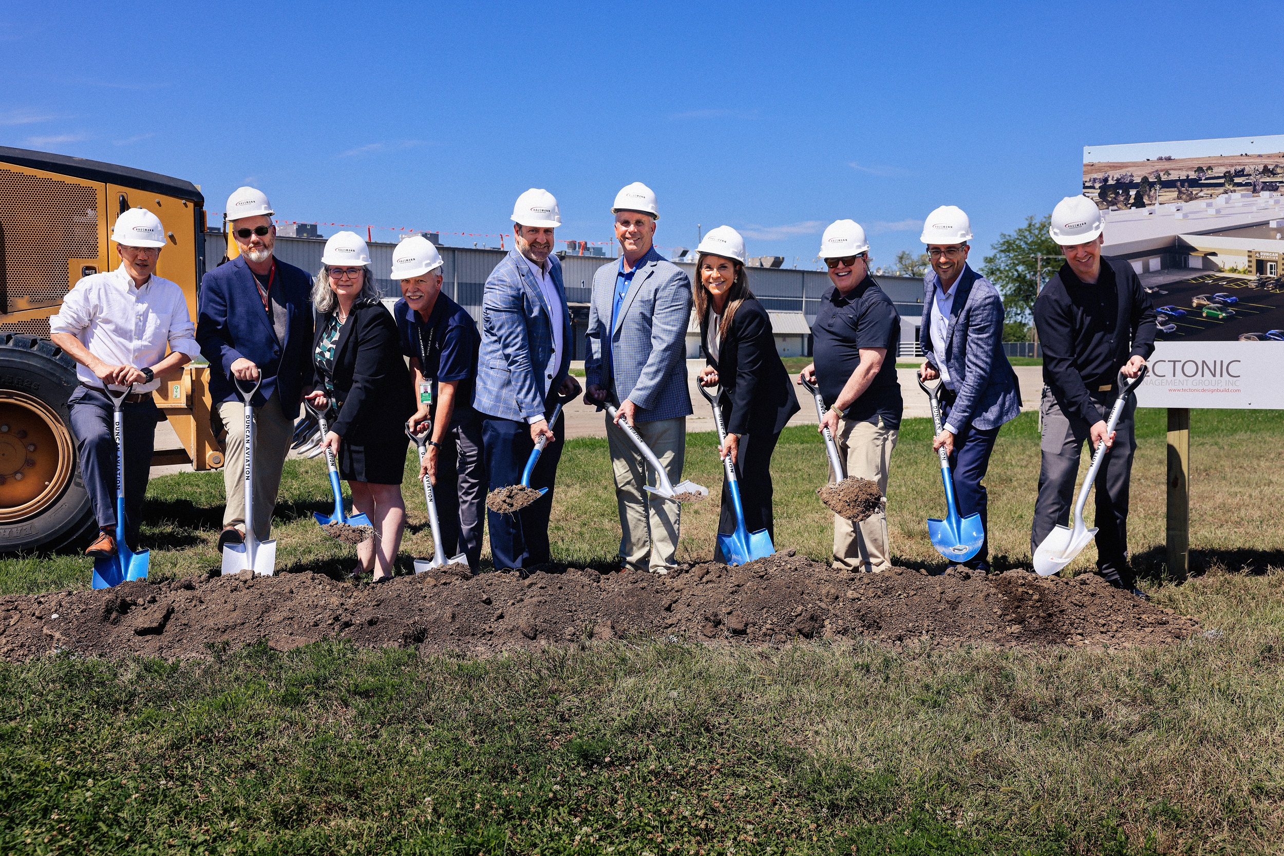 The ceremony marked a significant milestone as representatives from Pratt & Whitney Canada, Hausmann Construction, Tectonic Management Group, and Duncan Aviation gathered to commemorate the occasion.